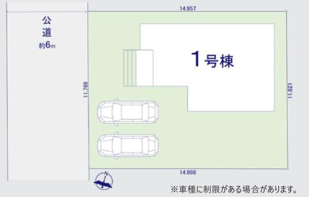 | 駐車場 | 2台 | 道路の幅員 | 道路幅:6m、アスファルト舗装、西 6.04m 公道 |