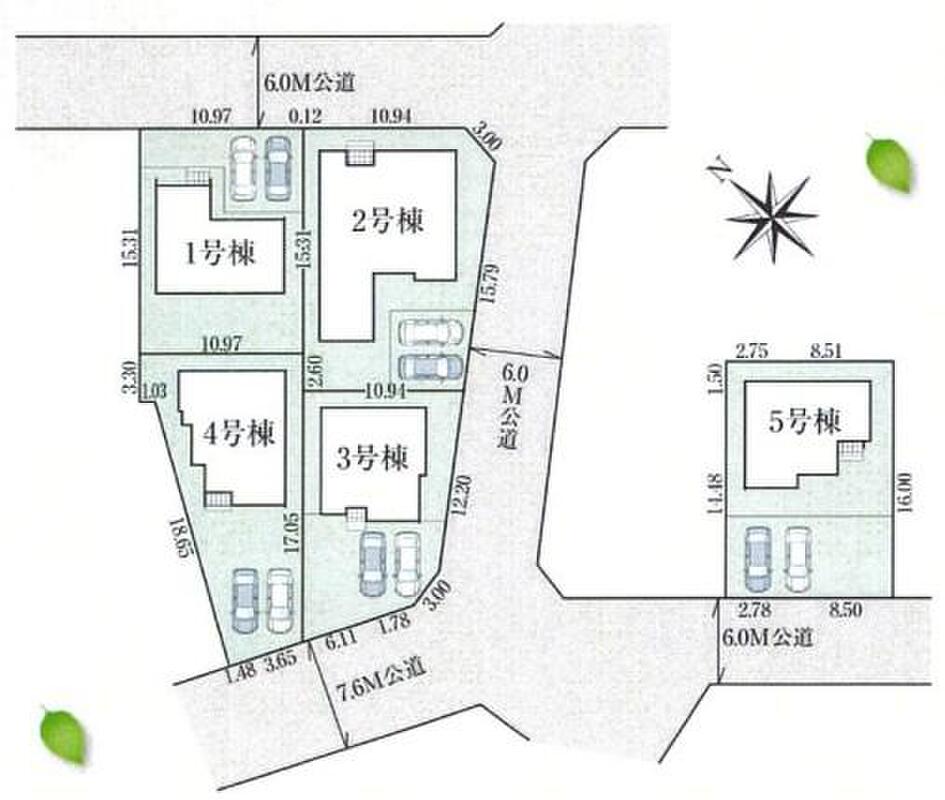 <本日見学可>ゆとりの敷地46坪~65坪!南西向き全5棟