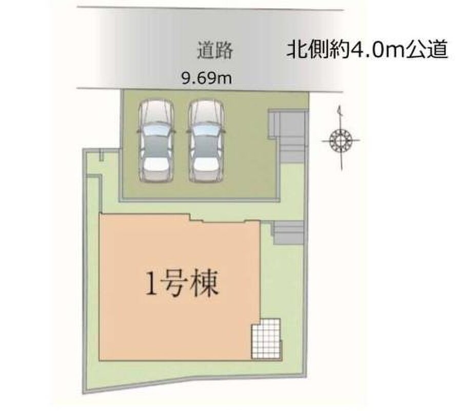 | 駐車場 | 2台 | 道路の幅員 | 道路幅:4m、アスファルト舗装、北 4m 公道 |