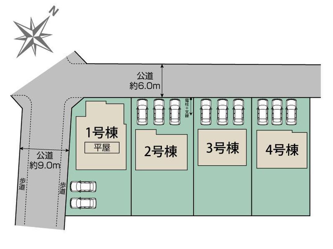 全4棟の開発分譲地!各棟異なる、採光・生活動線・収納力を考慮した個性豊かな魅力溢れるプラン。きっとお好みの間取りに出会えます!全棟カースペース3台確保(1号棟は2台)!ぜひ一度現地にてご覧ください!