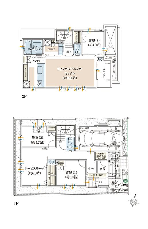 - ※完成予想図やCG合成画像は、門塀・植栽・庭・外観等、実際とは多少異なる場合があります。