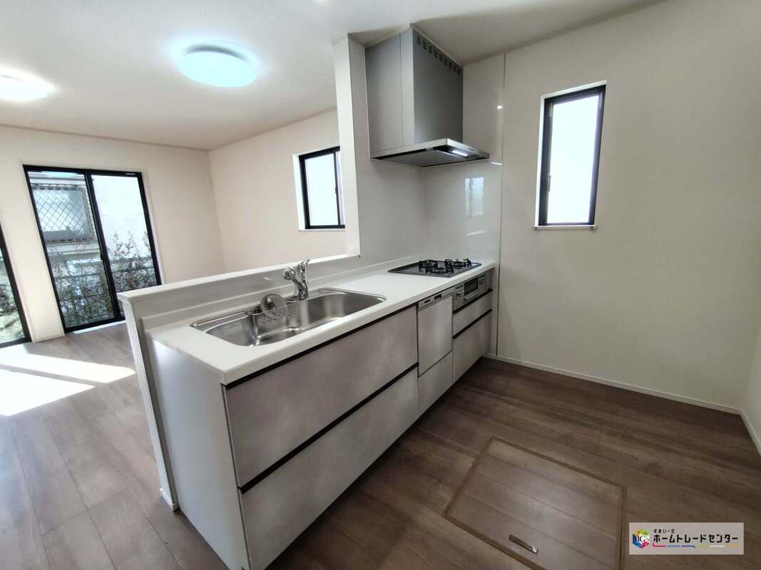 ・人気の対面式キッチンはリビングのお子様の様子がわかって安心