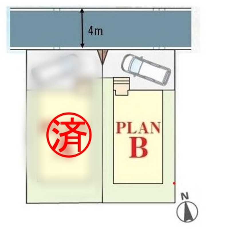 | 駐車場 | 1台 | 道路の幅員 | 道路幅:4m、アスファルト舗装、北側4m公道 |