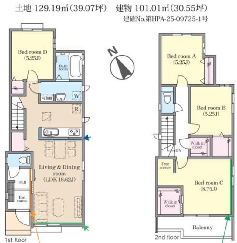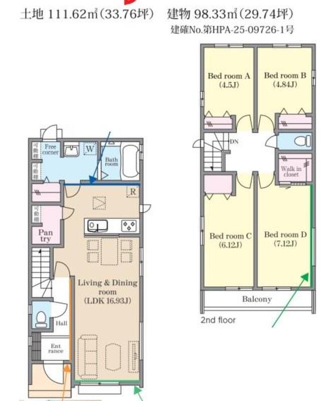 | 建物面積 | 98.33m2・101.01m2 | 土地面積 | 111.62m2・129.19m2 |