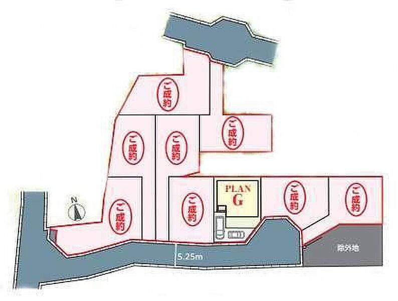 | 駐車場 | 2台 | 道路の幅員 | 道路幅:5.2m、アスファルト舗装、南側5.25m公道 |