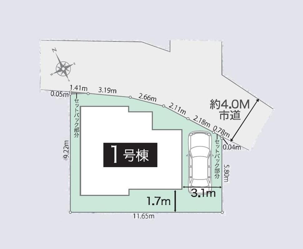 | 駐車場 | 1台 | 道路の幅員 | 道路幅:4m、アスファルト舗装、北東側約4m公道 |