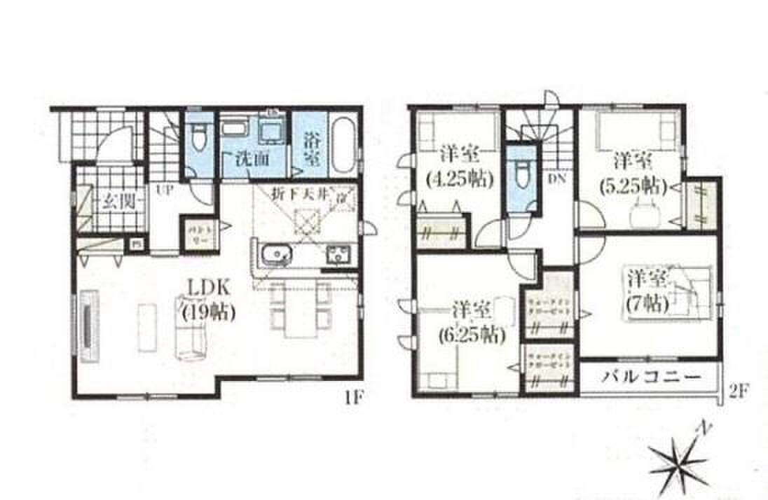 | 間取り | 3LDK・4LDK | 建物構造 | 木造サイディング貼アスファルトシングル葺2階建 |