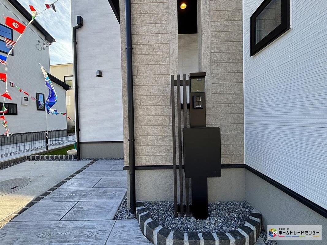 ポスト、モニター付きインターホンが一体となった機能性門柱!ドアを開ける前に訪問者を映像で確認できるため安心です。宅配業者への対応もスムーズにできます!