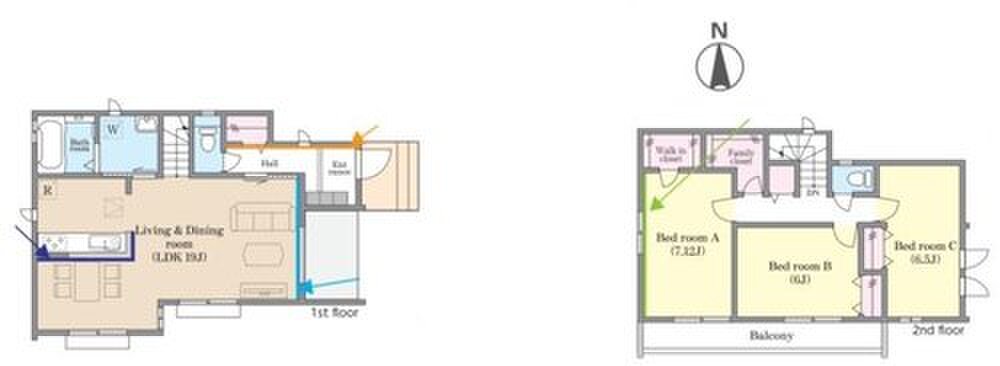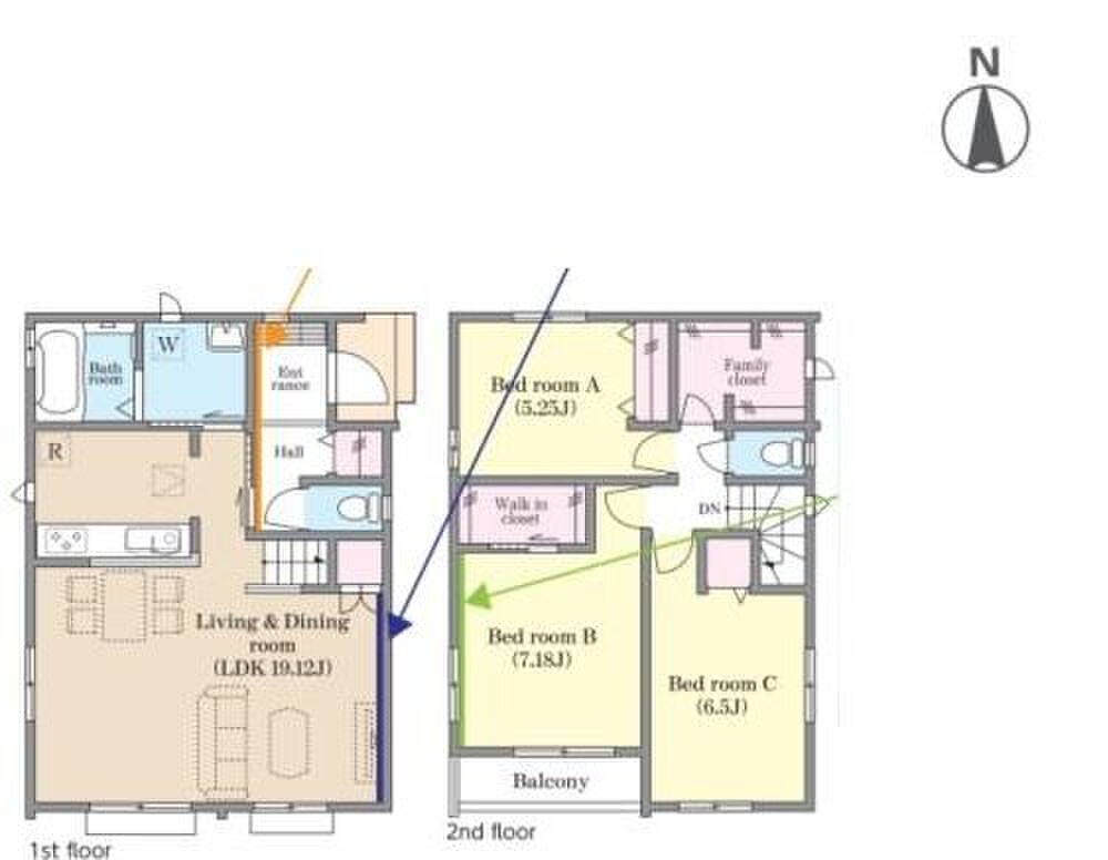 | 建物面積 | 92.32m2・99.36m2 | 土地面積 | 103.17m2・103.96m2 |