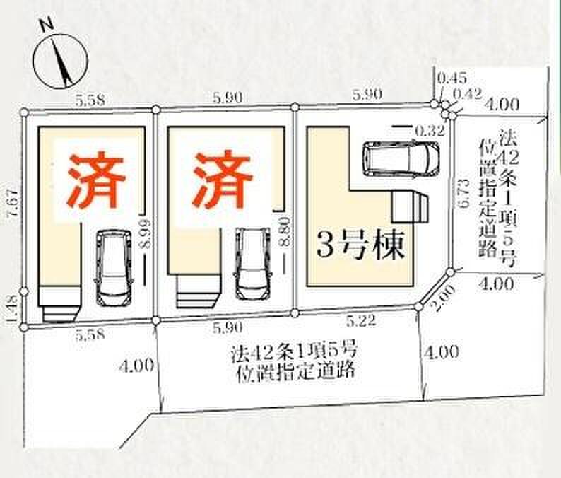 | 駐車場 | 1台 | 道路の幅員 | 道路幅:4m、南東:4m私道・南西:4m私道 以下備考欄に記載 |