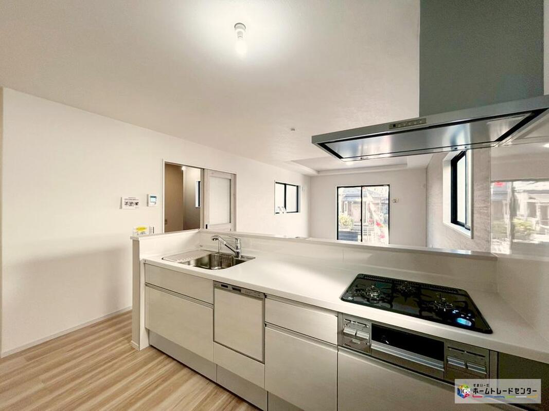人工大理石トップ仕様の高級感のあるシステムキッチン。食洗機や浄水器、ハンドシャワーなど、高機能付きです。サポート力◎で、家事も快適スムーズに出来そうです♪