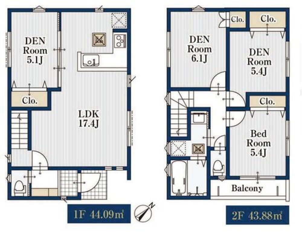 - 86.11m2・87.97m2(26.04坪・26.61坪)