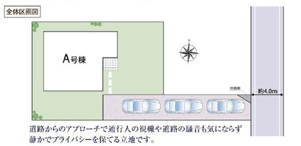 | 駐車場 | 3台 | 道路の幅員 | 道路幅:4m、アスファルト舗装、東側約4m公道 |
