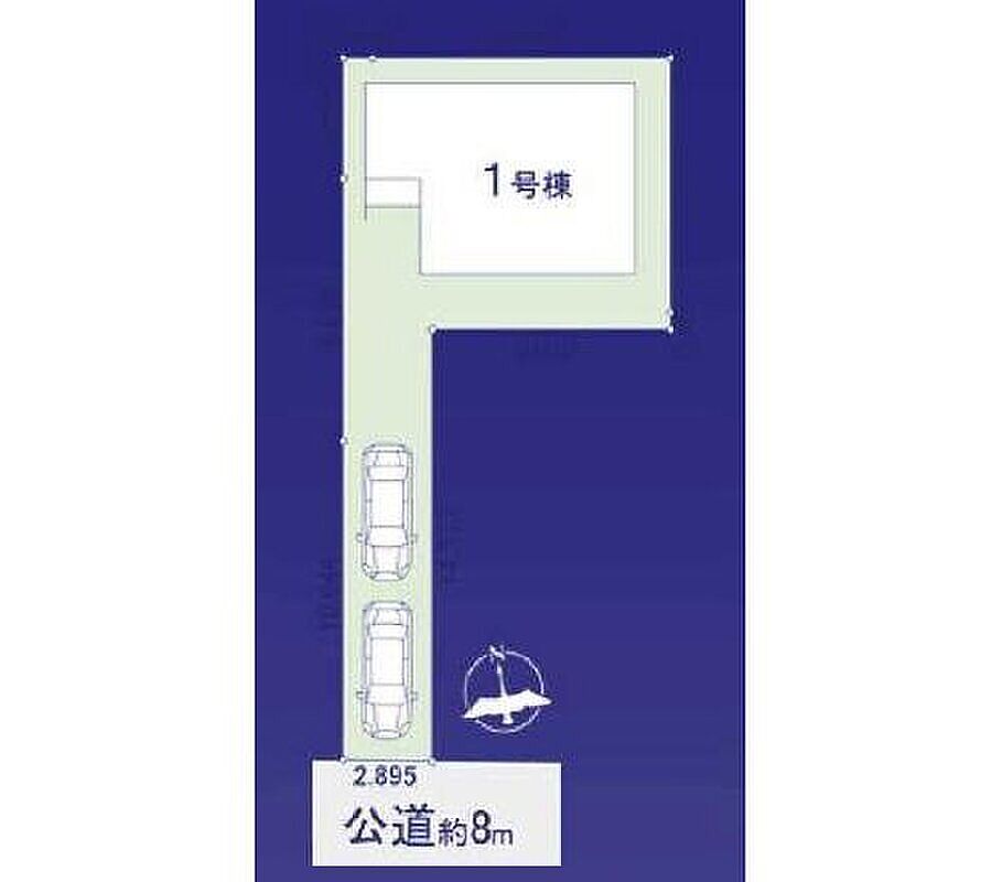 | 駐車場 | 2台(車種による) | 道路の幅員 | 道路幅:8m、アスファルト舗装、南側8m公道 |