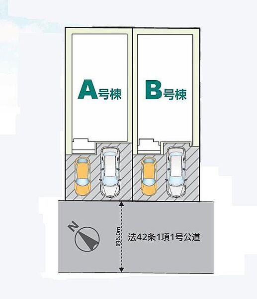 | 駐車場 | 2台(※車種による) | 道路の幅員 | 道路幅:5.9m、アスファルト舗装、南西側約5.9m公道 |