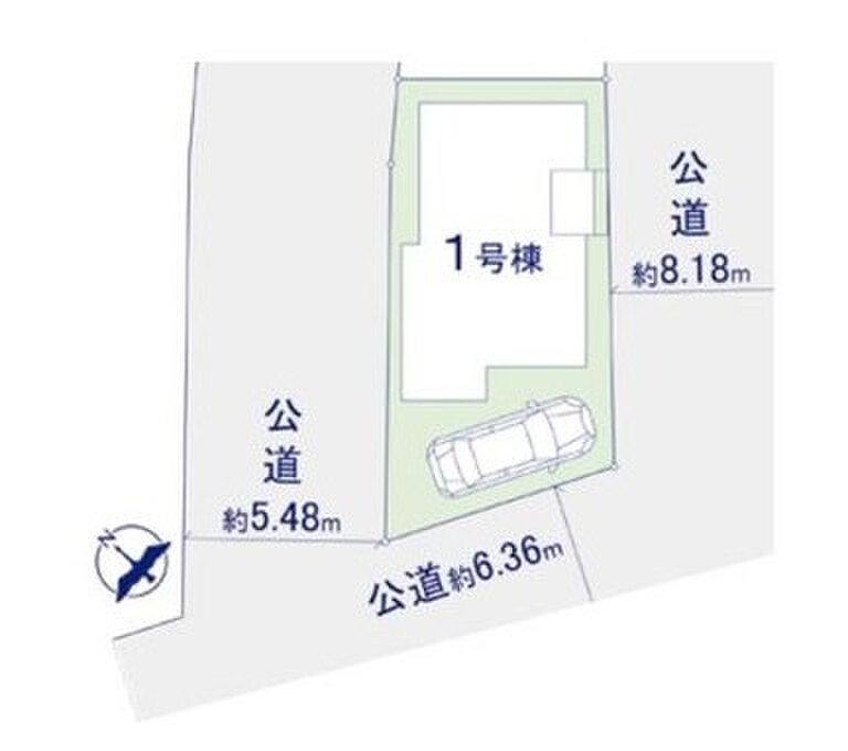 | 駐車場 | 1台 | 道路の幅員 | 道路幅:5.4m~8.1m、南東 8.18m 公道、南西 6.36m 公道、北西 5.48m 公道 |
