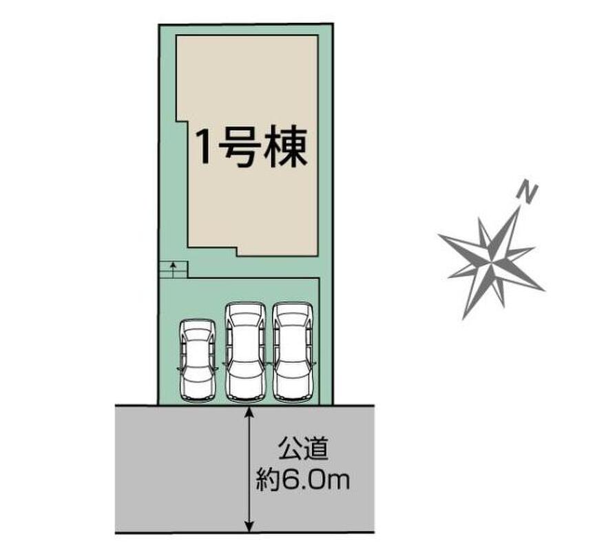 | 駐車場 | 3台 | 道路の幅員 | 道路幅:6m、アスファルト舗装、南側6.0m公道 |