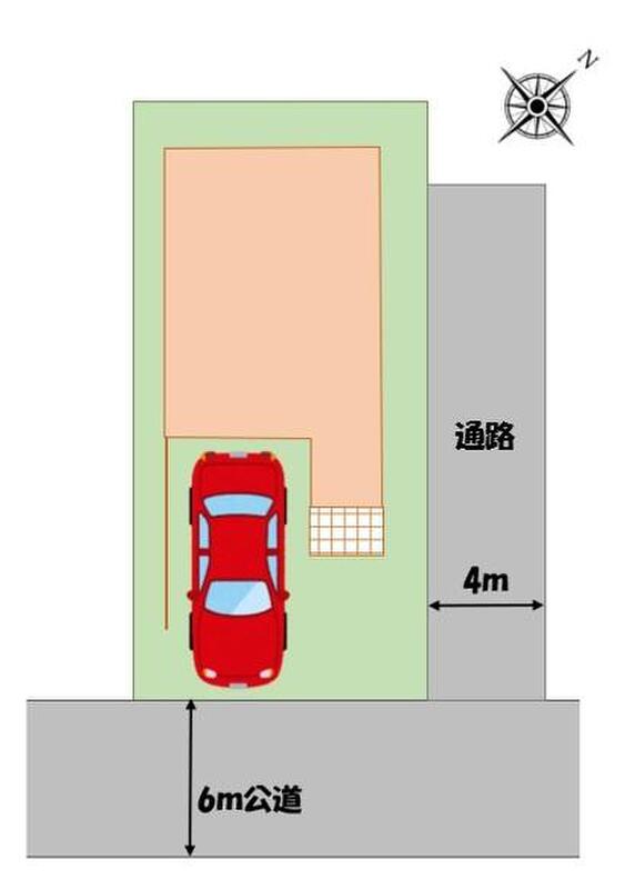 | 駐車場 | 1台 | 道路の幅員 | 道路幅:6m、アスファルト舗装、一方 : 南東 6m 公道 |