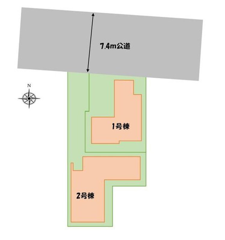 | 駐車場 | - | 道路の幅員 | 道路幅:7.4m、アスファルト舗装、北側 約7.4m公道 |
