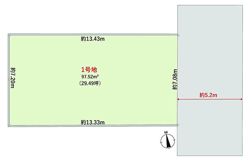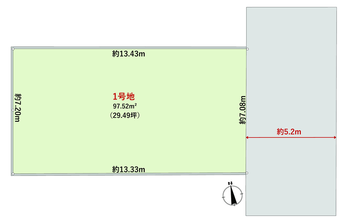 | 駐車場 | 1台 | 道路の幅員 | 道路:接道/公道(東)7.08m、幅員/約5.2m、アスファルト舗装 |