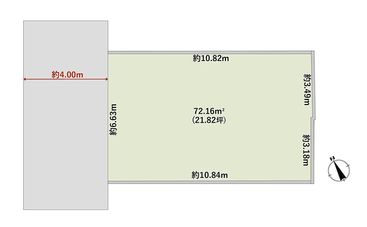 | 駐車場 | 1台(ビルトインガレージ) | 道路の幅員 | 道路:接道/私道(西)6.63m、幅員/約4.0m、アスファルト舗装 |