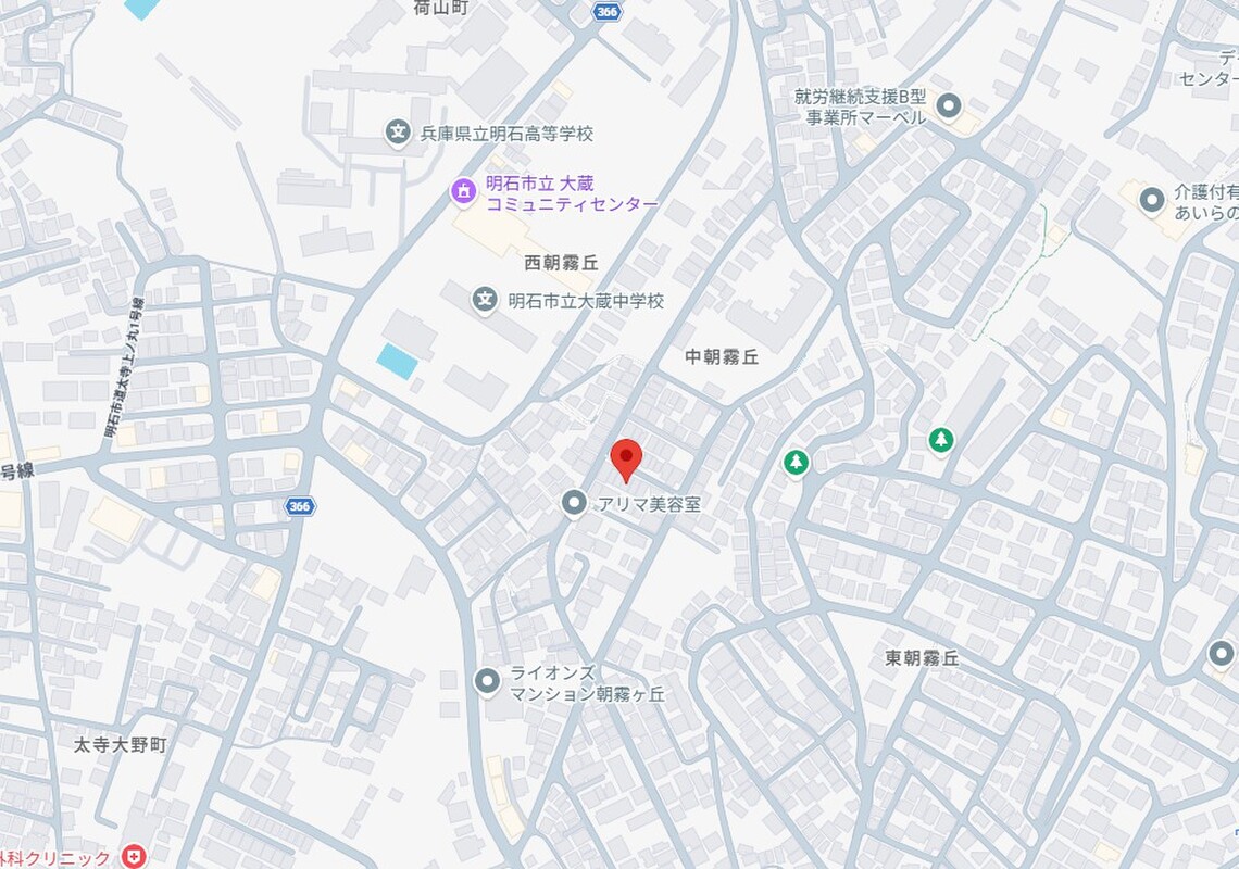 山陽電鉄本線「大蔵谷」駅 徒歩17分 JR東海道・山陽本線「朝霧」駅 徒歩23分 山陽電鉄本線「人丸前」駅 徒歩19分 |