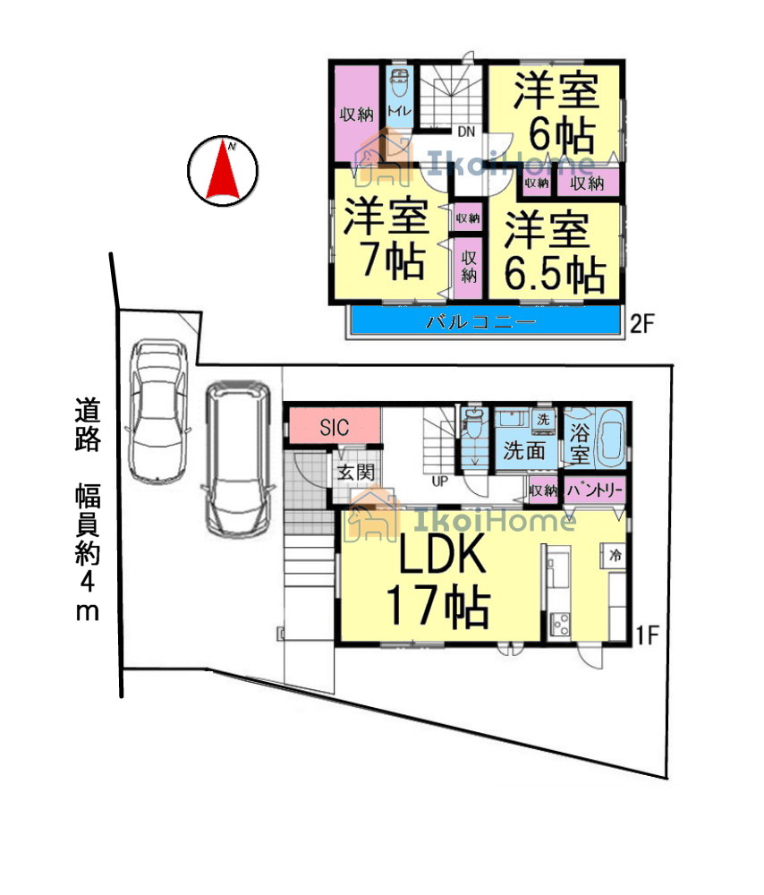 | 駐車場 | 2台 | 道路の幅員 | 南西側4.1m公道 |
