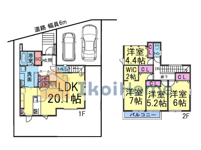 | 駐車場 | 2台 | 道路の幅員 | 北側6.0m私道 |