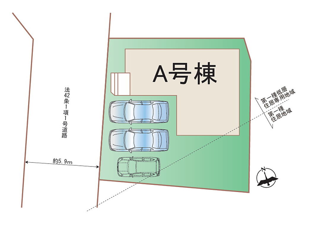 | 駐車場 | 3台 | 道路の幅員 | 西側5.9m公道 |