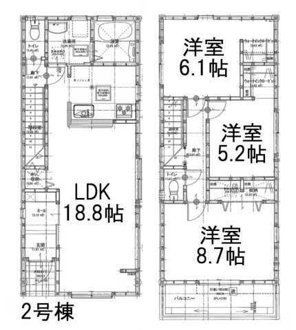| 建物面積 | 93.34m2~99.22m2 | 土地面積 | 124.41m2~127.43m2 |