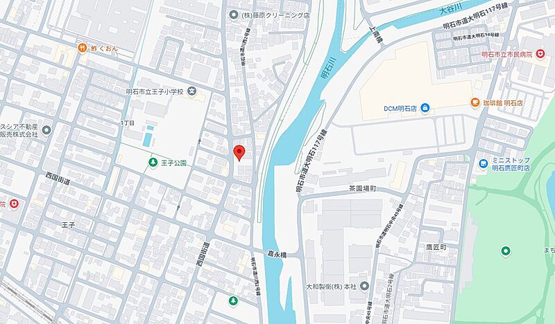 山陽電鉄本線「西新町」駅 北王子町からバス乗車1分 徒歩3分 JR東海道・山陽本線「明石」駅 北王子町からバス乗車8分 徒歩3分 山陽電鉄本線「林崎松江海岸」駅 国道西新町からバス乗車5分 徒歩13分 |