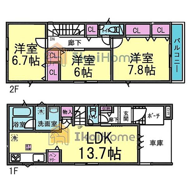 | 建物面積 | 89.30m2~94.27m2 | 土地面積 | 77.76m2~84.84m2 |