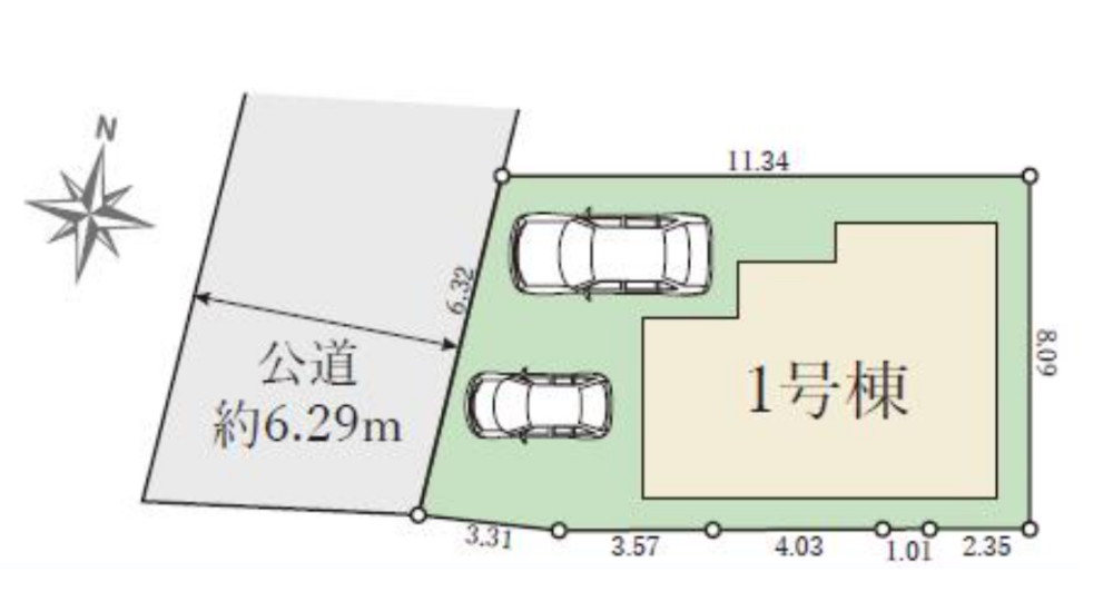 | 駐車場 | 2台 | 道路の幅員 | 西側6.2m公道 |