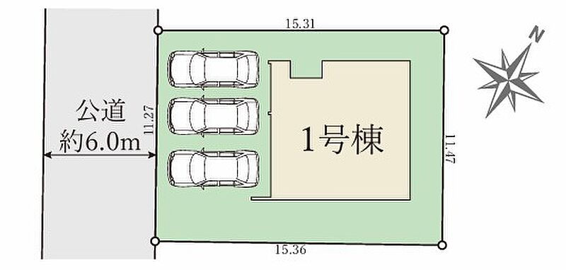 | 駐車場 | 3台 | 道路の幅員 | 南西側6.0m公道 |