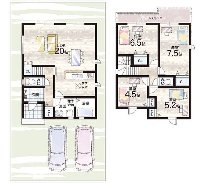 - ※完成予想図やCG合成画像は、門塀・植栽・庭・外観等、実際とは多少異なる場合があります。