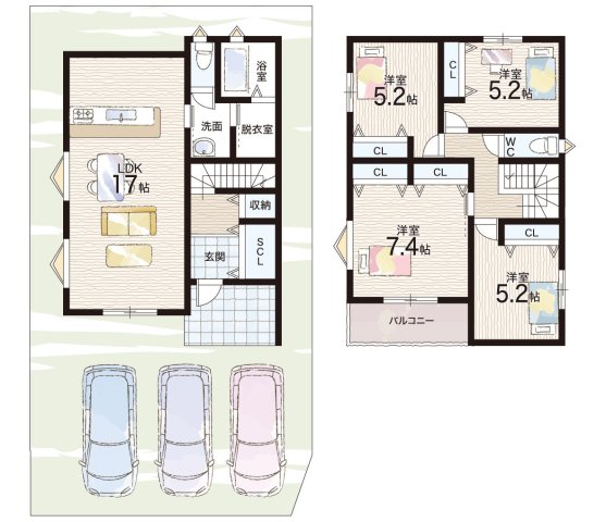 | 駐車場 | 3台 | 道路の幅員 | 南側5.2m公道 |