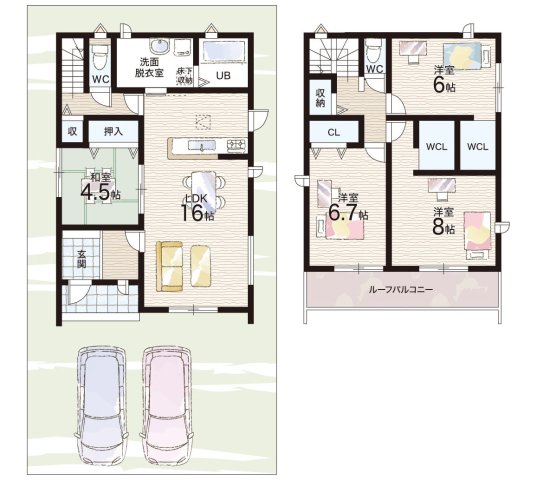 - ※完成予想図やCG合成画像は、門塀・植栽・庭・外観等、実際とは多少異なる場合があります。
