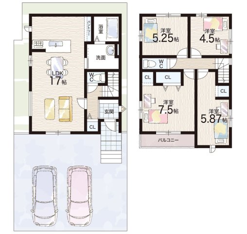 - ※完成予想図やCG合成画像は、門塀・植栽・庭・外観等、実際とは多少異なる場合があります。