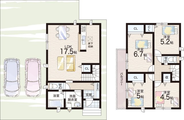 - ※完成予想図やCG合成画像は、門塀・植栽・庭・外観等、実際とは多少異なる場合があります。