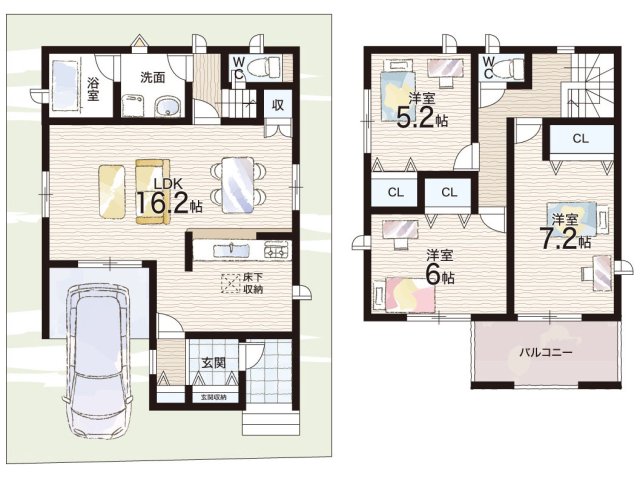 - ※完成予想図やCG合成画像は、門塀・植栽・庭・外観等、実際とは多少異なる場合があります。