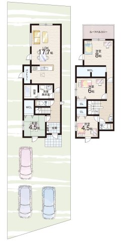 - ※完成予想図やCG合成画像は、門塀・植栽・庭・外観等、実際とは多少異なる場合があります。