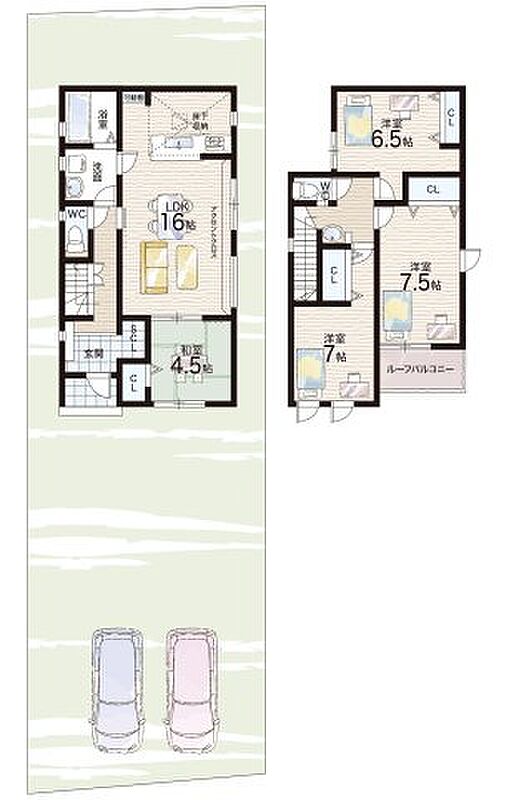 - ※完成予想図やCG合成画像は、門塀・植栽・庭・外観等、実際とは多少異なる場合があります。