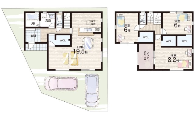 - ※完成予想図やCG合成画像は、門塀・植栽・庭・外観等、実際とは多少異なる場合があります。