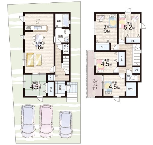 - ※完成予想図やCG合成画像は、門塀・植栽・庭・外観等、実際とは多少異なる場合があります。