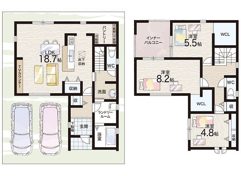 - ※完成予想図やCG合成画像は、門塀・植栽・庭・外観等、実際とは多少異なる場合があります。