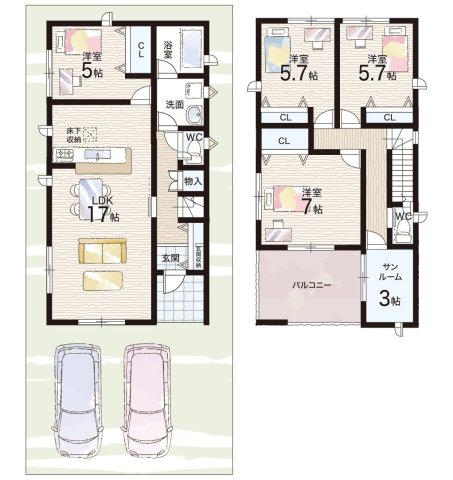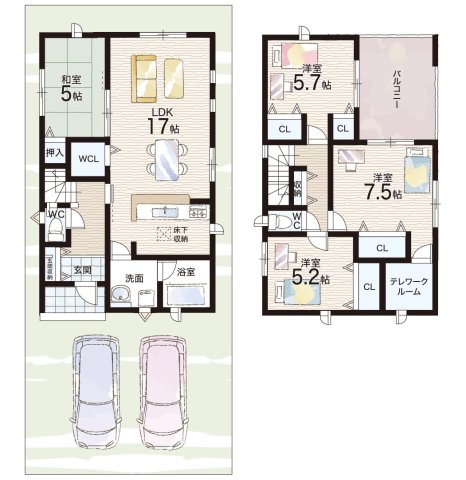 - ※完成予想図やCG合成画像は、門塀・植栽・庭・外観等、実際とは多少異なる場合があります。