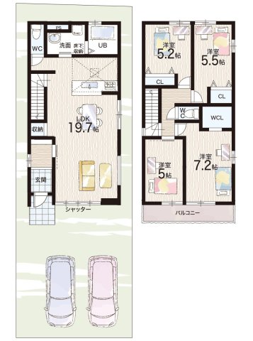 - ※完成予想図やCG合成画像は、門塀・植栽・庭・外観等、実際とは多少異なる場合があります。