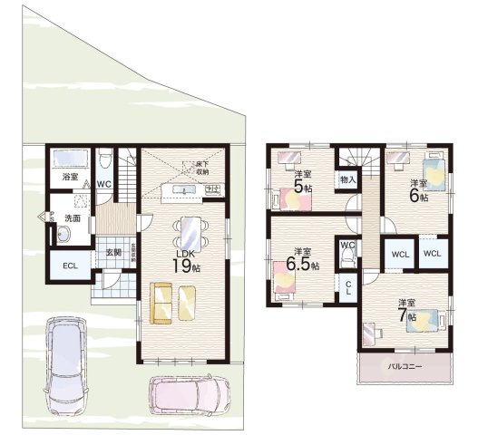 - ※完成予想図やCG合成画像は、門塀・植栽・庭・外観等、実際とは多少異なる場合があります。