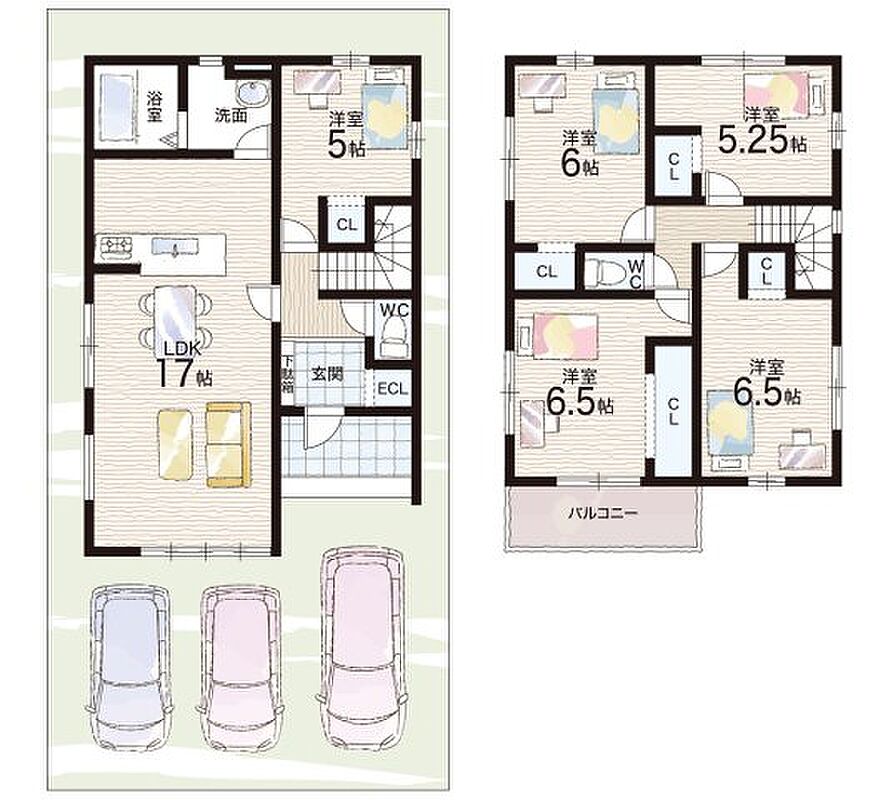 - ※完成予想図やCG合成画像は、門塀・植栽・庭・外観等、実際とは多少異なる場合があります。