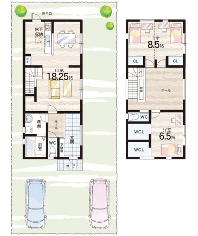 - ※完成予想図やCG合成画像は、門塀・植栽・庭・外観等、実際とは多少異なる場合があります。